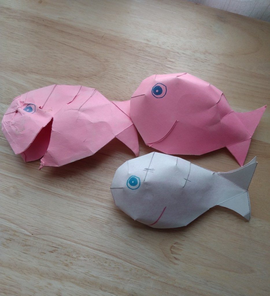 We still have the original 3 fish. For some reason I stuck them in a book and kept them but I can’t find them this morning. I am covered in dust from looking. But just as good are the three fish Scott made and used to put my engagement in when he proposed.